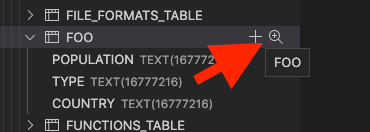 You can quickly preview the contents of a table by clicking the + magnifier.